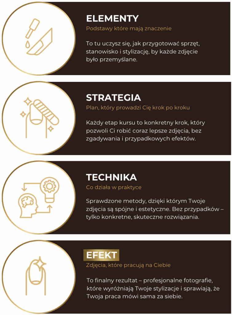 Poznaj autorską formułę ESTE – elementy, strategię, technikę i efekty, które pomogą Ci tworzyć zdjęcia wyróżniające Cię w branży beauty. Naucz się fotografii, która przyciąga klientki jeszcze zanim przeczytają opis.