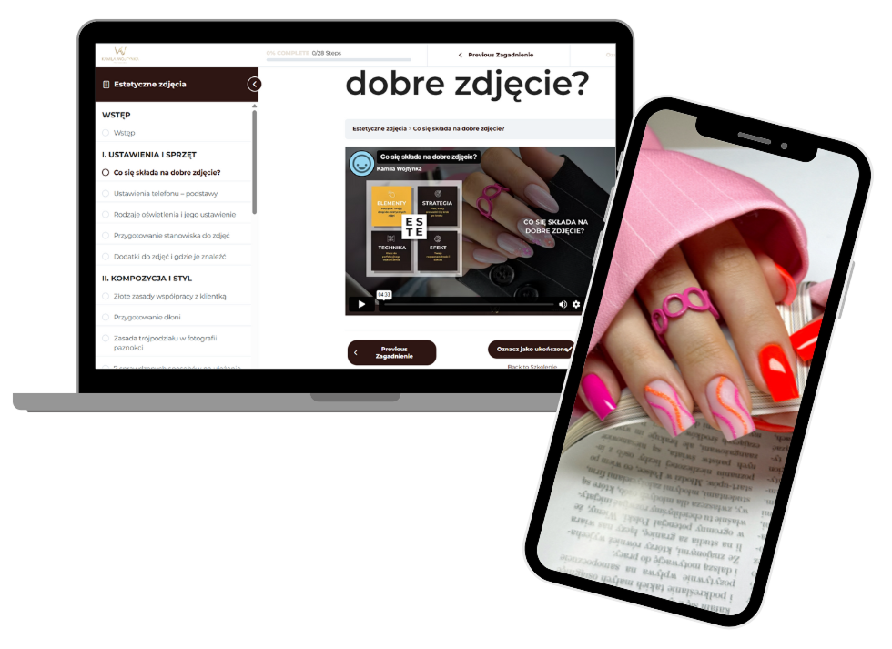 Kurs jest świetnie poukładany i logiczny, dzięki temu od razu zrozumiałam, co robiłam źle i jak to poprawić. Już po pierwszych lekcjach moje zdjęcia paznokci wyglądały o niebo lepiej!